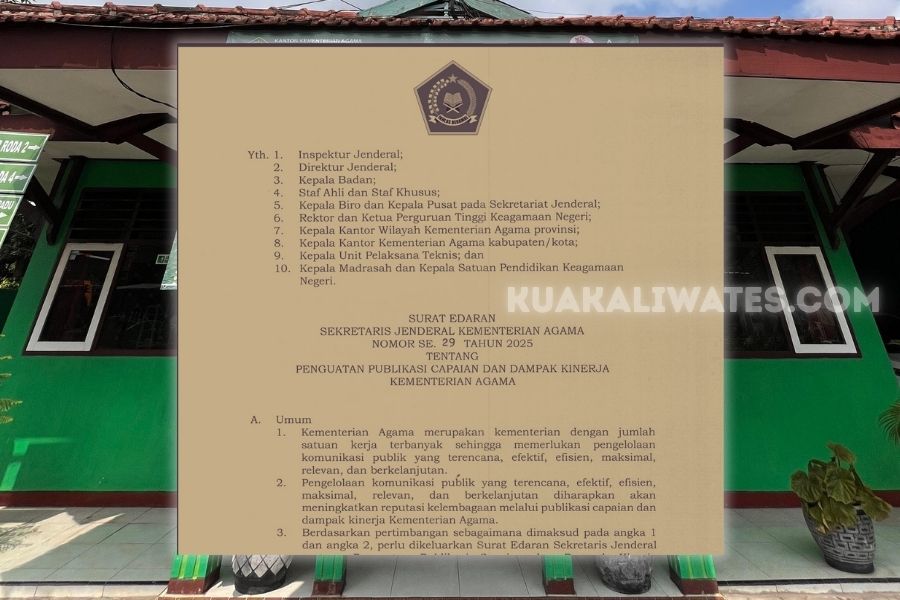 KUAKALIWATES.COM — Sekretaris Jenderal Kementerian Agama RI, Kamaruddin Amin, resmi menerbitkan Surat Edaran Nomor 29 Tahun 2025 tentang Penguatan Publikasi Capaian dan Dampak Kinerja. Surat edaran ini hadir sebagai pedoman baru bagi seluruh satuan kerja Kemenag dalam memperkuat komunikasi publik yang lebih transparan, terencana, relevan, dan berkelanjutan. Melalui kebijakan ini, Kemenag ingin meneguhkan reputasi kelembagaannya sekaligus memastikan setiap capaian kinerja benar-benar dapat dipahami dan dirasakan manfaatnya oleh masyarakat.